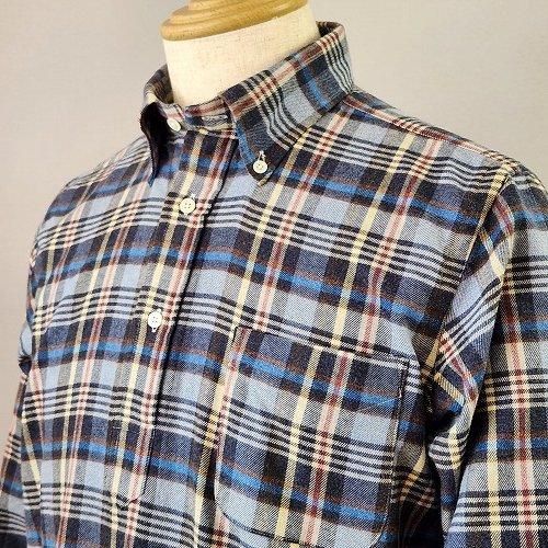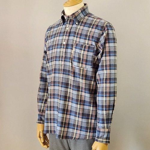 プルオーバーのボタンダウンは、SOUTIENCOL創業以来のマスターピース。幾度もマイナーチェンジして代表作となりました。生地はイタリアCancliniのネルチェック。色の使い方など日本の生地にはない斬新なデザイン。