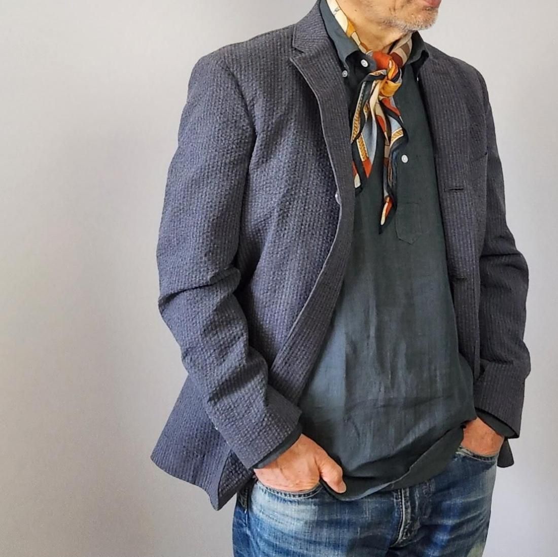 盛夏にはアウトでさまになるデザイン性豊かなシャツです。