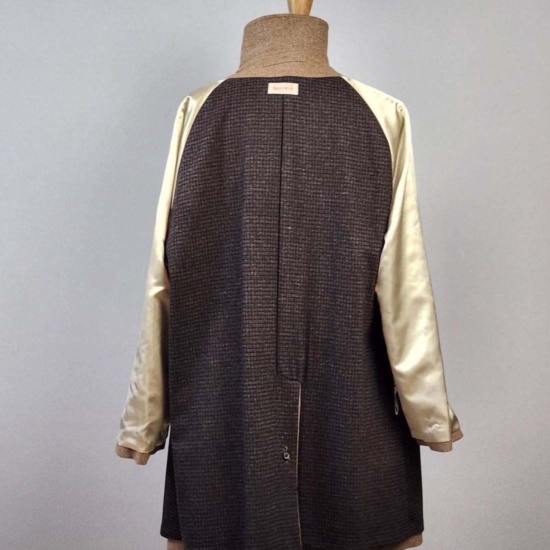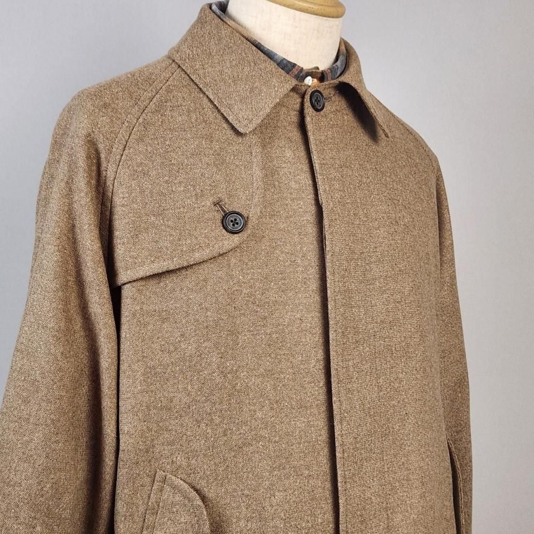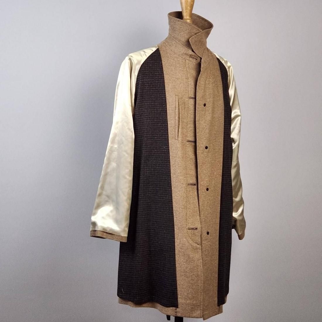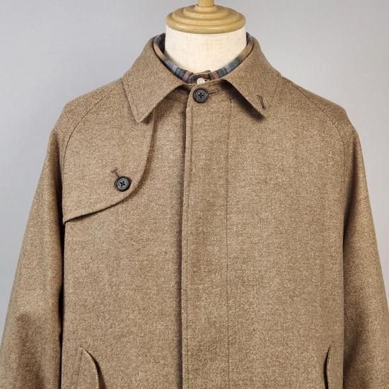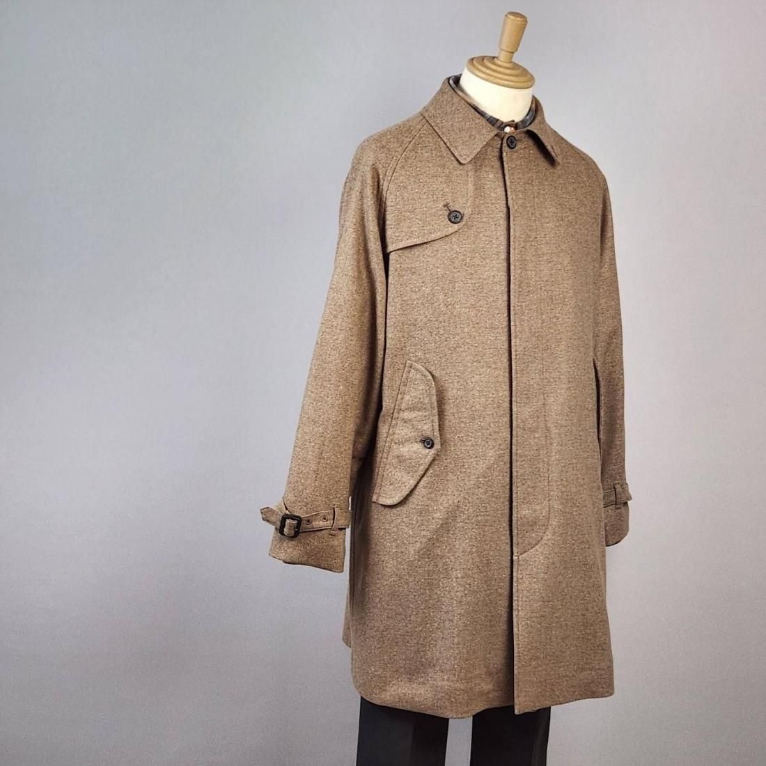 カシミヤ混ホームスパンを贅沢に使用したSLIP ON カシミヤホームスパンは、軽くて暖かなウールガンクラブで裏地、衿、衿腰裏を仕立てたコートです。